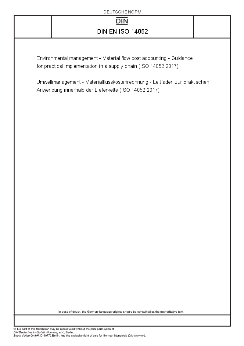| Name: | Environmental management - Material flow cost accounting - Guidance for practical implementation in a supply chain (ISO 14052:2017) |