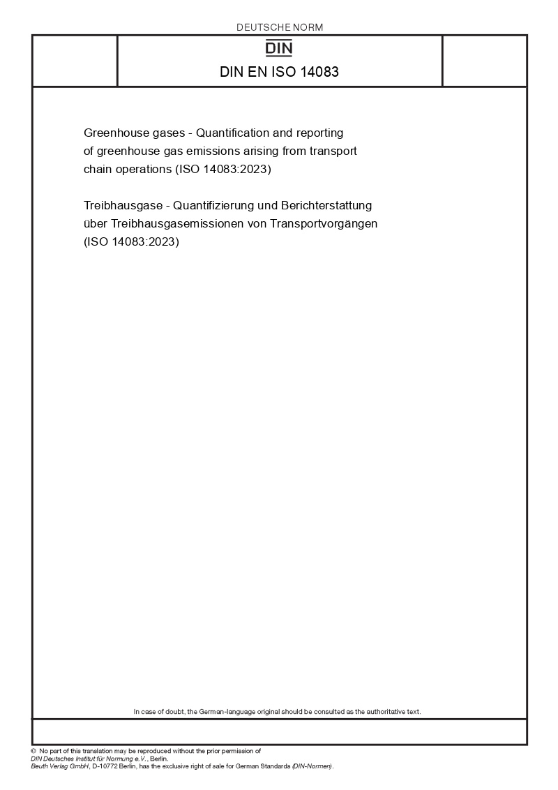 | Name: | Greenhouse gases - Quantification and reporting of greenhouse gas emissions arising from transport chain operations (ISO 14083:2023) |