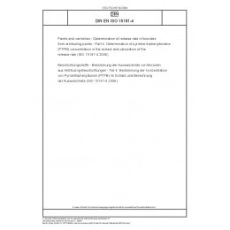 | Name: | Paints and varnishes - Determination of release rate of biocides from antifouling paints - Part 4: Determination of pyridine-triphenylborane (PTPB) concentration in the extract and calculation of the release rate (ISO 15181-4:2008) |