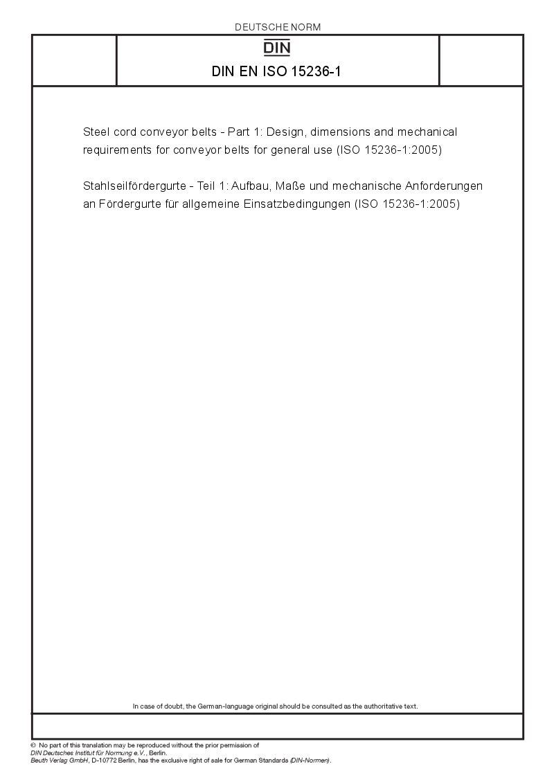 | Name: | Steel cord conveyor belts - Part 1: Design, dimensions and mechanical requirements for conveyor belts for general use (ISO 15236-1:2016) |