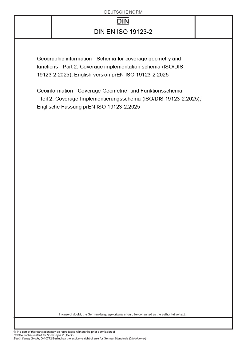 Geographic information - Schema for coverage geometry and functions - Part 2: Coverage implementation schema (ISO/DIS 19123-2:2025); English version prEN ISO 19123-2:2025