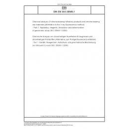 | Name: | Chemical analysis of chrome-bearing refractory products and chrome-bearing raw materials (alternative to the X-ray fluorescence method) - Part 1: Apparatus, reagents, dissolution and determination of gravimetric silica (ISO 20565-1:2008) |