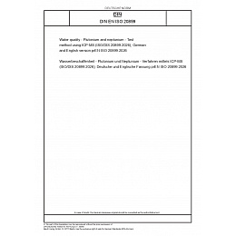 | Name: | Water quality - Plutonium and neptunium - Test method using ICP-MS (ISO/DIS 20899:2026); German and English version prEN ISO 20899:2026 |