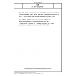 | Name: | Cryogenic vessels - Transportable vacuum insulated vessels of not more than 1 000 litres volume - Part 1: Design, fabrication, inspection and tests (ISO/DIS 21029-1:2025); German and English version prEN ISO 21029-1:2025 |
