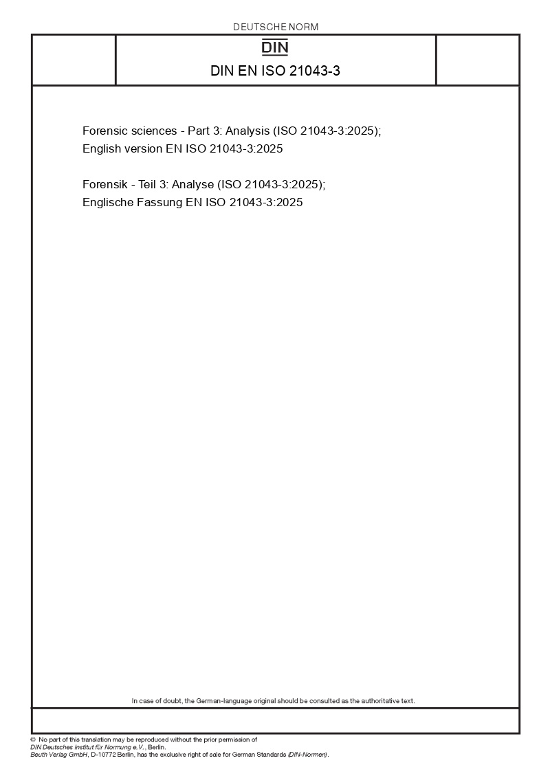 DIN EN ISO 21043-3 Forensic sciences - Part 3: Analysis (ISO 21043-3:2025); English version EN ISO 21043-3:2025in stockReleased: 2025-12