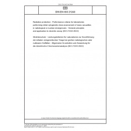 | Name: | Radiation protection - Performance criteria for laboratories performing initial cytogenetic dose assessment of mass casualties in radiological or nuclear emergencies - General principles and application to dicentric assay (ISO 21243:2022) |