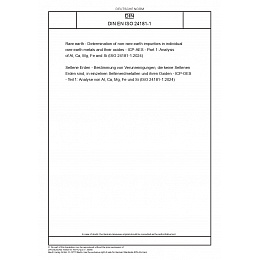 | Name: | Rare earth - Determination of non-rare earth impurities in individual rare earth metals and their oxides - ICP-AES - Part 1: Analysis of Al, Ca, Mg, Fe and Si (ISO 24181-1:2024) |