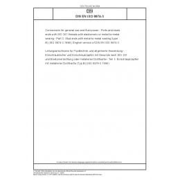 | Name: | Connections for general use and fluid power - Ports and studs ends with ISO 261 threads with elastomeric or metal-to-metal sealing - Part 3: Stud ends with metal-to-metal sealing (type B) (ISO 9974-3:1996); English version of DIN EN ISO 9974-3 |