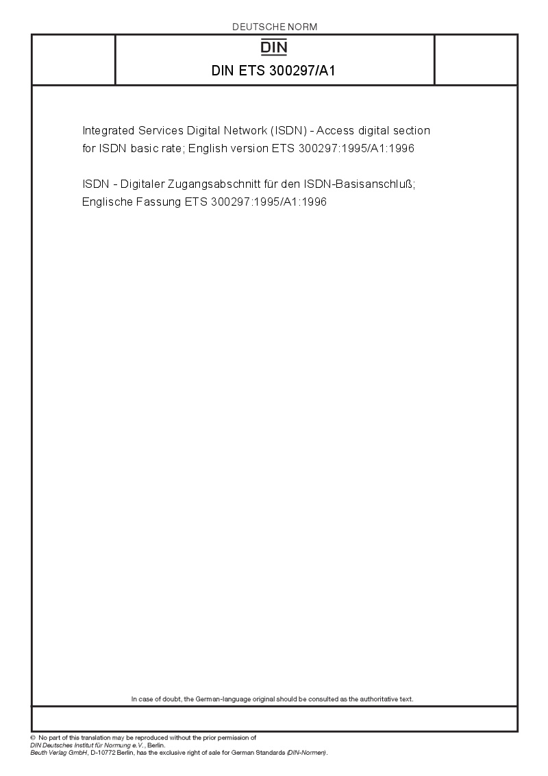 | Name: | Integrated Services Digital Network (ISDN) - Access digital section for ISDN basic rate; English version ETS 300297:1995/A1:1996 |