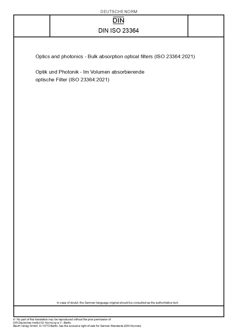 | Name: | Optics and photonics - Bulk absorption optical filters (ISO 23364:2021) |