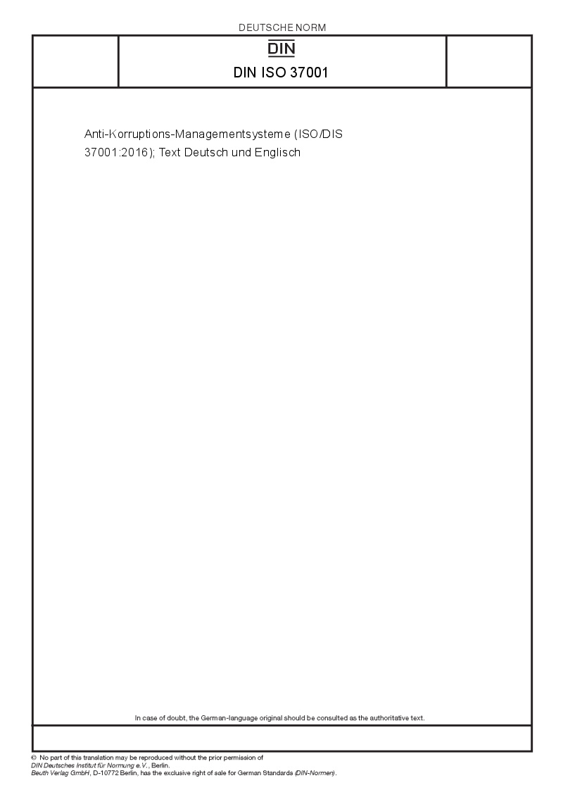 Managementsysteme zur Korruptionsbekämpfung - Anforderungen mit Leitlinien zur Anwendung (ISO 37001:2016)