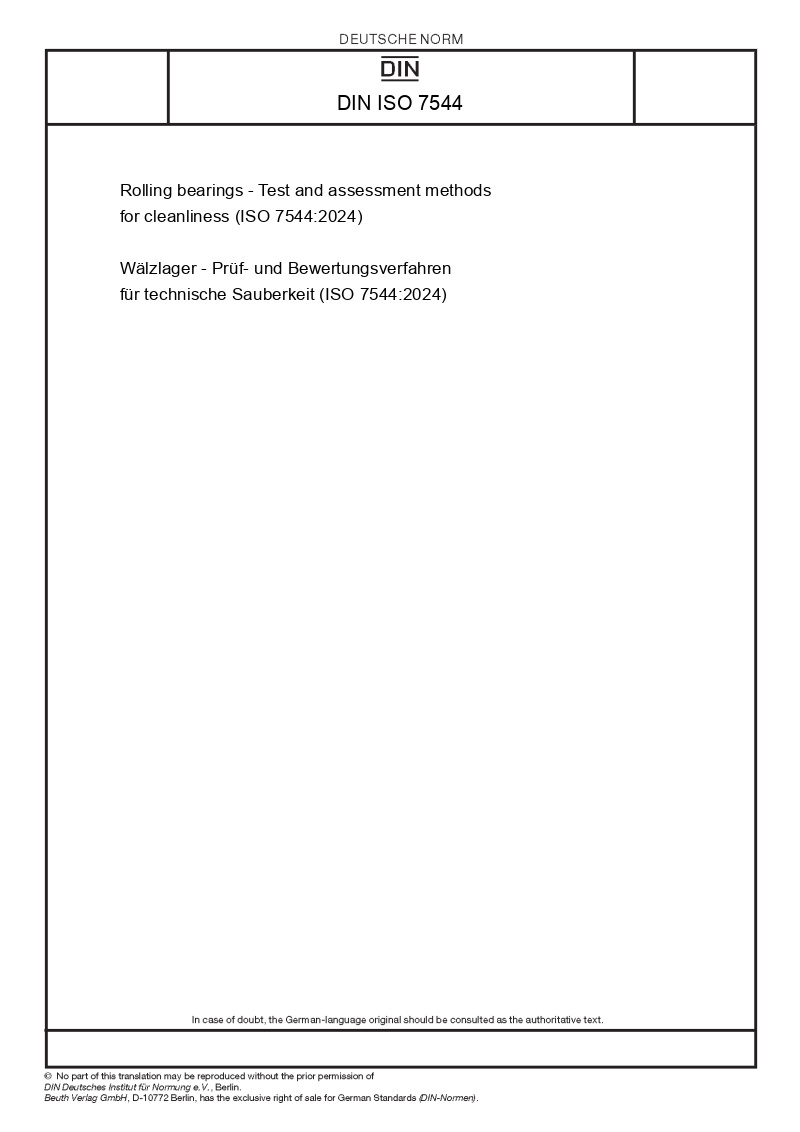 Name: | Rolling bearings - Test and assessment methods for cleanliness (ISO 7544:2024) |