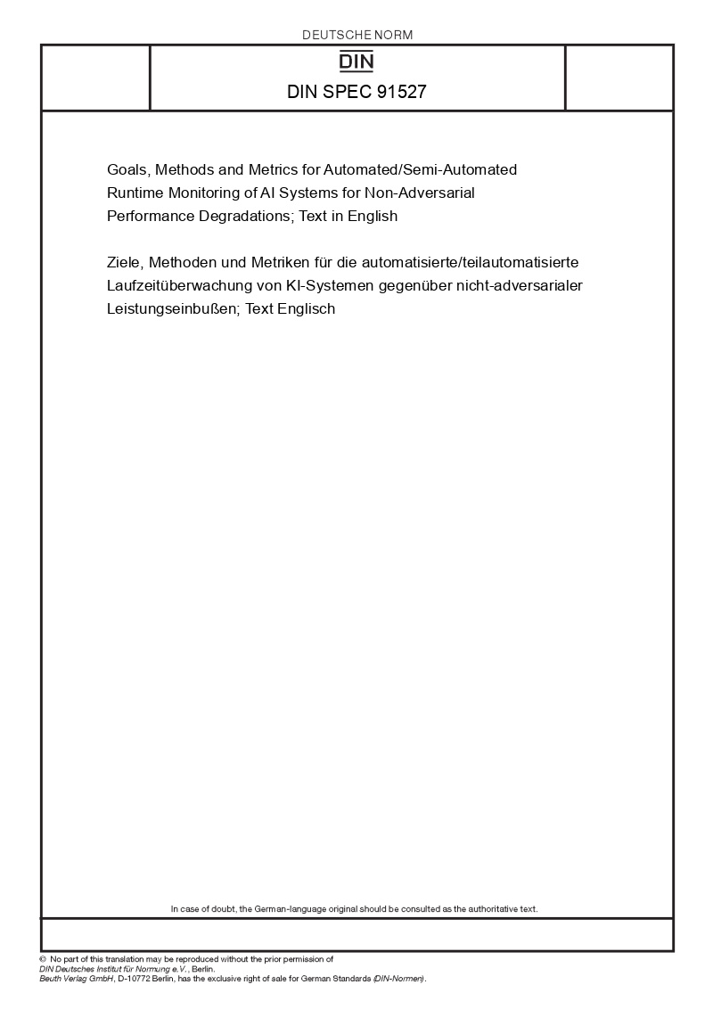 Ziele, Methoden und Metriken für die automatisierte/teilautomatisierte Laufzeitüberwachung von KI-Systemen gegenüber nicht-adversarialer Leistungseinbußen; Text Englisch