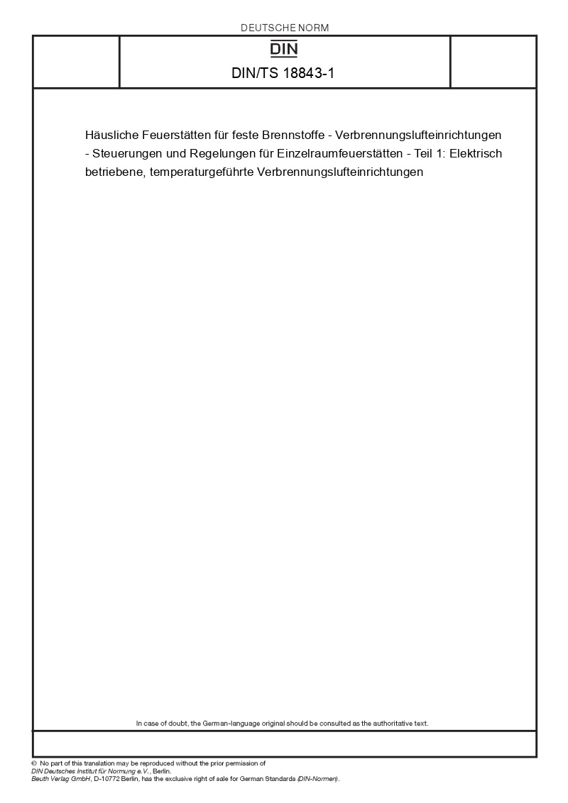 | Name: | Häusliche Feuerstätten für feste Brennstoffe - Verbrennungslufteinrichtungen - Steuerungen und Regelungen für Einzelraumfeuerstätten - Teil 1: Elektrisch betriebene, temperaturgeführte Verbrennungslufteinrichtungen |