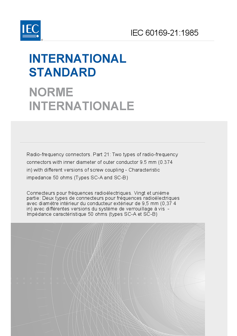 Radio-frequency connectors. Part 21: Two types of radio-frequency connectors with inner diameter of outer conductor 9.5 mm (0.374 in) with different versions of screw coupling - Characteristic impedance 50 ohms (Types SC-A and SC-B)