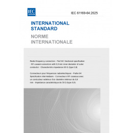 IEC 61169-64:2025, which is a sectional specification (SS), provides information for the preparation of detail specifications (DS) for coaxial connectors with 0,8 mm inner diameter of the outer conductor, characteristic impedance of 50 Ω, and with screw coupling. These connectors are referred to below as type 0,8 connectors. They are used in telecommunications technology as well as in test and measurement applications for operating frequencies up to 145 GHz.
