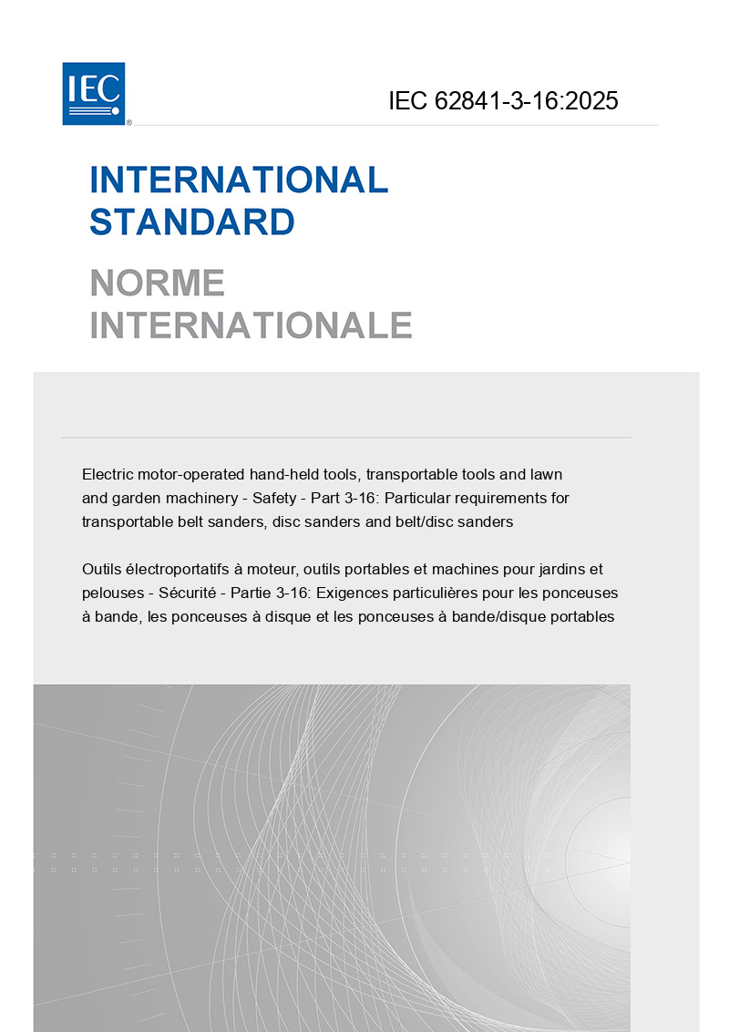 IEC 62841-3-16:2025 applies to transportable belt sanders, disc sanders and belt/disc sanders which are equipped with