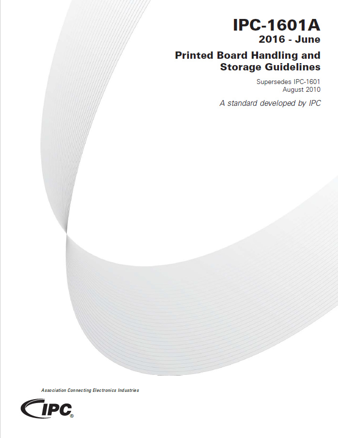 The industry's sole guideline on the handling, packaging and storage of printed boards. The guidelines in this document are intended to protect printed boards from contamination, physical damage, solderability degradation and moisture uptake. Consideration is given to packaging material types and methods, production environment, handling and transport of product, and establishing baking profiles for moisture removal. Revision A provides expanded coverage of moisture barrier bags (MBBs), the impact of baking on printed board solderability, ESD issues, mositure concerns for etched cores and composites, desiccant material and HIC cards, and example flowdowns of packaging and handling requirements.