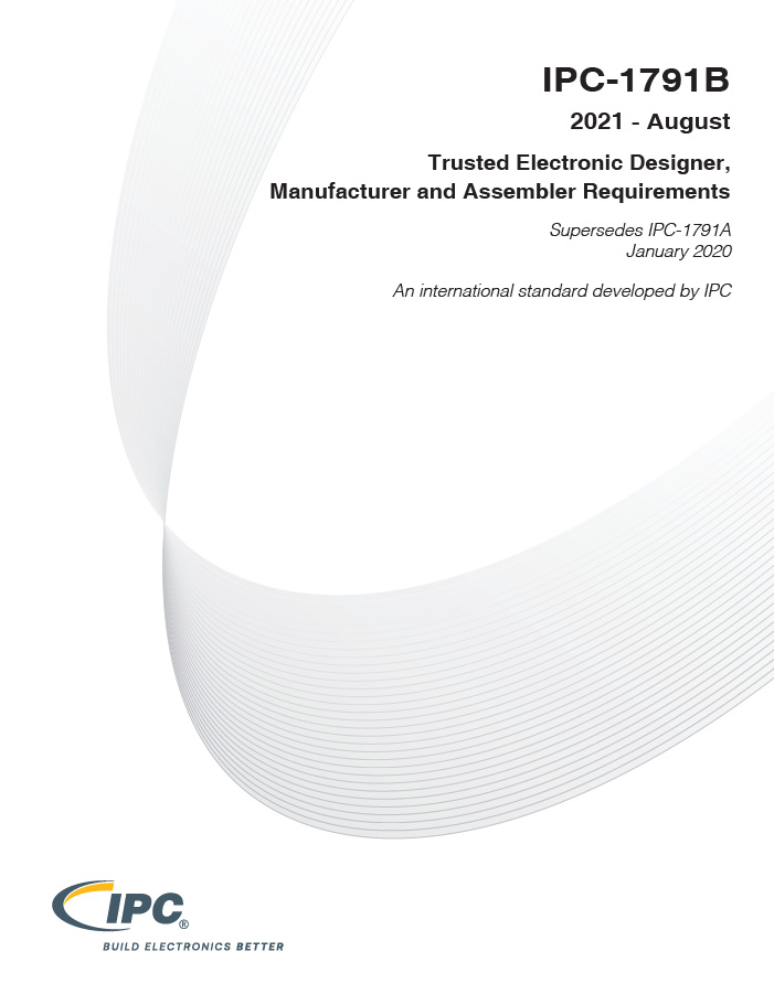 IPC-1791B standard provides minimum requirements, policies and procedures for printed board design, fabrication, and assembly organizations and/or companies to become trusted sources for markets requiring high levels of confidence in the integrity of delivered products.