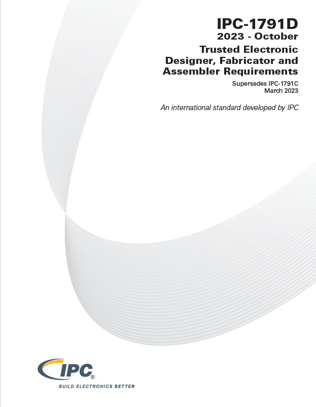 IPC-1791D standard provides minimum requirements, policies and procedures for printed board design, fabrication, assembly, and cable and wire harness assembly organizations and/or companies to become trusted sources for markets requiring high levels of confidence in the integrity of delivered products. These trusted sources shall ensure quality, supply chain risk management (SCRM), security and chain of custody (ChoC).