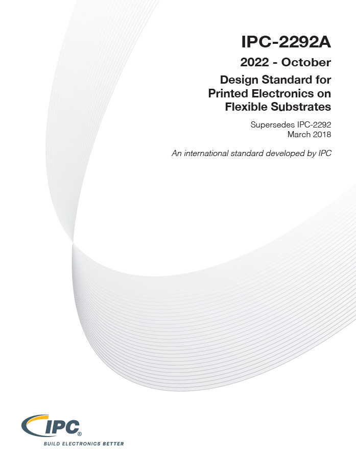 IPC-2292A standard establishes specific requirements for the design of printed electronic applications and their forms of component mounting and interconnecting structures on flexible substrates. Flexible substrates, as pertaining to IPC-2292A standard, are materials, devices or functionalized circuitry which have some amount of flexibility or bendability (not rigid) but are not considered to be stretchable.