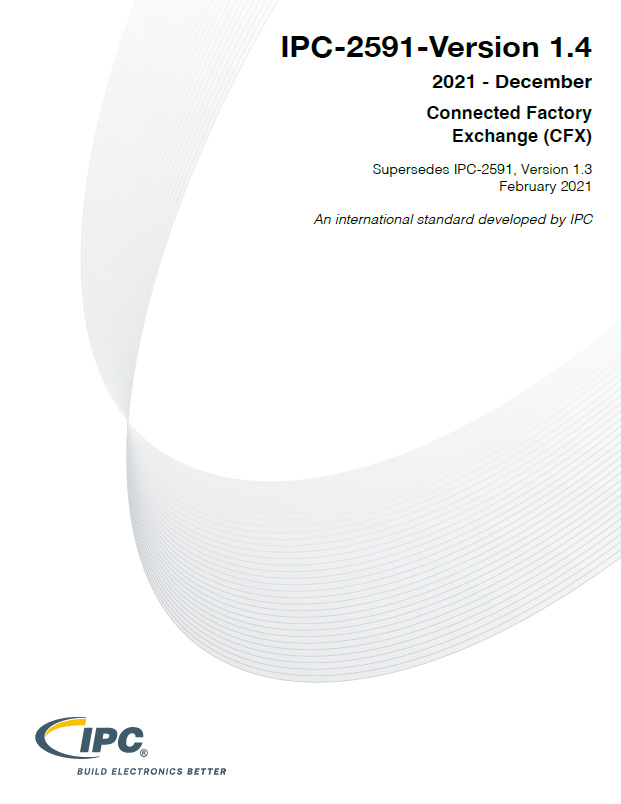 IPC-2591, Version 1.4 updates several significant IPC-CFX messages as well as new messages to better align with IPC-HERMES-9852 and best utilization of IPC-2581 data.