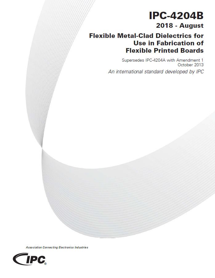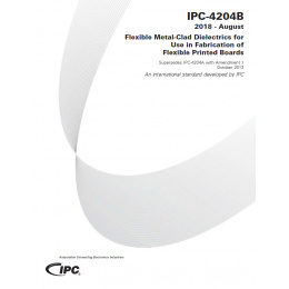 IPC-4204B establishes the classification system, the qualification and quality performance requirements for flexible metal-clad dielectric materials to be used for the fabrication of flexible printed boards. It encompasses 12 specification sheets that result from the combinations of various copper foil claddings; a polymer base dielectric selected from polyesters, polyimides, liquid crystal polymers and at least nine versions of polymer adhesives as well as adhesiveless bonding agents. The net result of these material combinations provide the industry with suitable clad, flexible dielectrics for fabricating flexible printed board interconnections. IPC-4204B also addresses how to utilize legacy designs that refer to earlier, out-of-date material designations