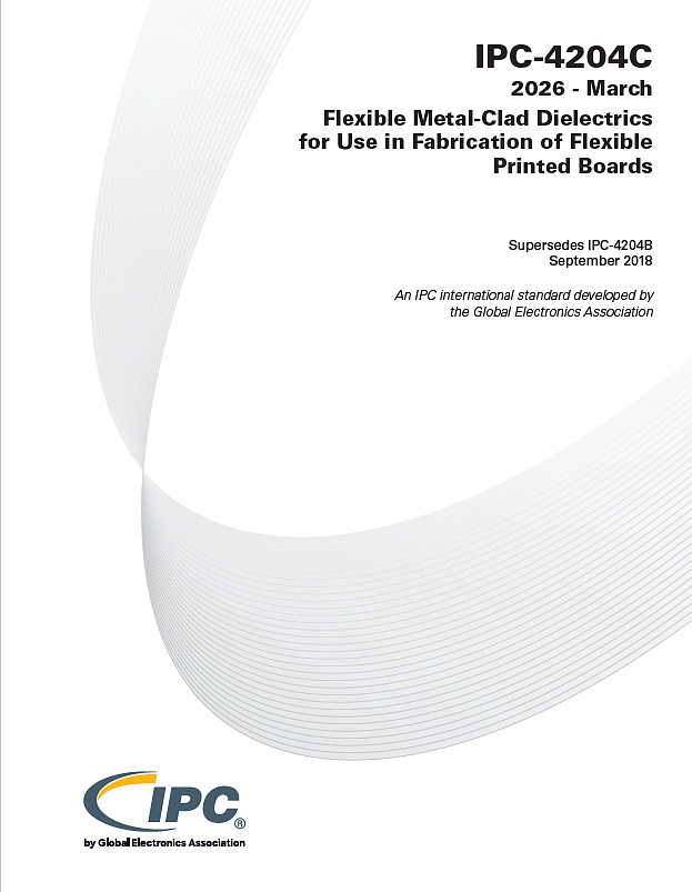 IPC-4204C establishes the classification system, qualification and quality performance requirements for flexible metal-clad dielectric materials to be used for the fabrication of flexible printed boards. It encompasses 12 specification sheets that result from the combinations of various copper foil claddings; a polymer base dielectric selected from polyesters, polyimides, liquid crystal polymers and at least nine versions of polymer adhesives as well as adhesiveless bonding agents. The net result of these material combinations provide the industry with suitable clad, flexible dielectrics for fabricating flexible printed board interconnections. IPC-4204C also addresses how to utilize legacy designs that refer to earlier, out-of-date material designations.