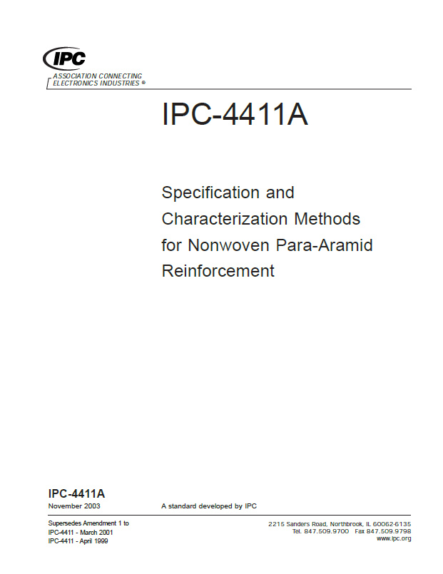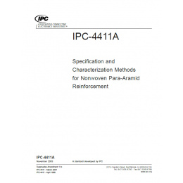 Covers the nomenclature, definitions and requirements for reinforcement made from nonwoven para-aramid fibers. Para-aramid reinforcement is primarily used in PCBs for HDI and high speed/high frequency applications. IPC-4411A also includes specification sheets, which can be used when selecting and purchasing nonwoven para-aramid reinforcement. Includes the incorporation of 14 new nonwoven para-aramid reinforcement specification sheets and the deletion of four nonwoven para-aramid materials that are no longer commercially available. Due to a test method correction, all specification sheets have been updated. 22 pages. Released November 2003.