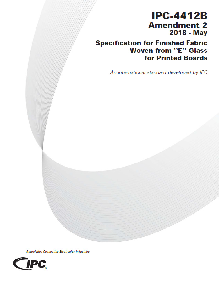 IPC-4421B-AM2 an amendment includes two extensive tables of finished fabric glass styles, one in SI (metric) units and the other in U.S. (English) units. IPC-4412B standard exhaustively covers the classification and requirements for finished fabrics that are formed by plain woven glass fiber yarns. Simply, these yarns are appropriately sized bundles of continuous filament, electrical-grade ("E" glass) borosilicate glass. Bulk "E" glass, for ease of description, is composed of a blend of raw metal oxides that form a borosilicate glass upon melting. Once melted, the glass formed loses all relation to the raw metal oxides, including the network forming boron oxides or borates. Released 5/18.