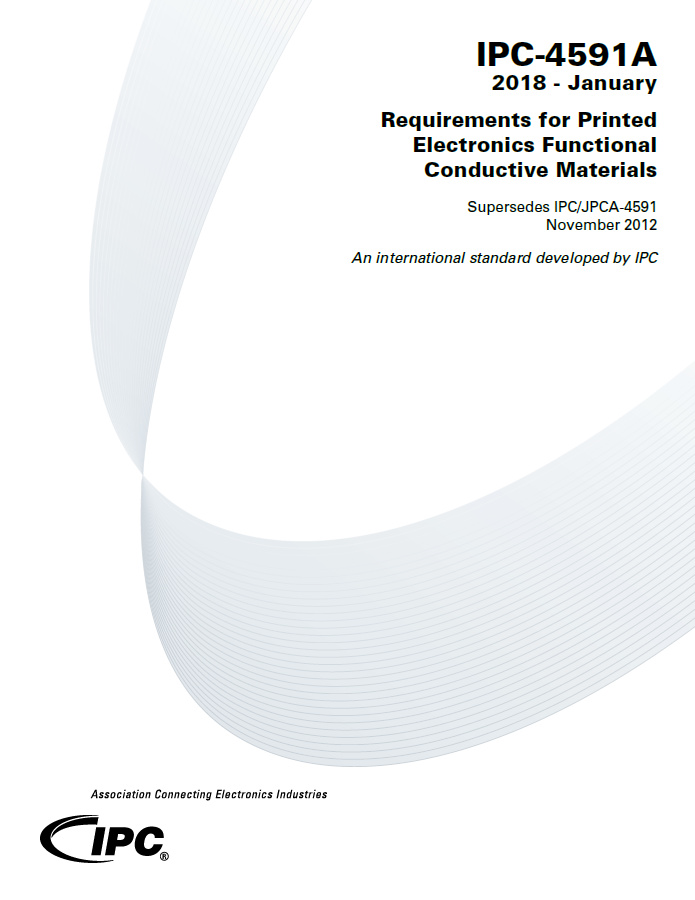 The IPC-4591A standard establishes the classification system and the qualification and quality conformance requirements for functional conductive materials used in printed electronics applications. It provides companies that procure functional materials for printed electronics with the necessary technical structure to design and manufacture products meeting conformance to industry-determined metrics.