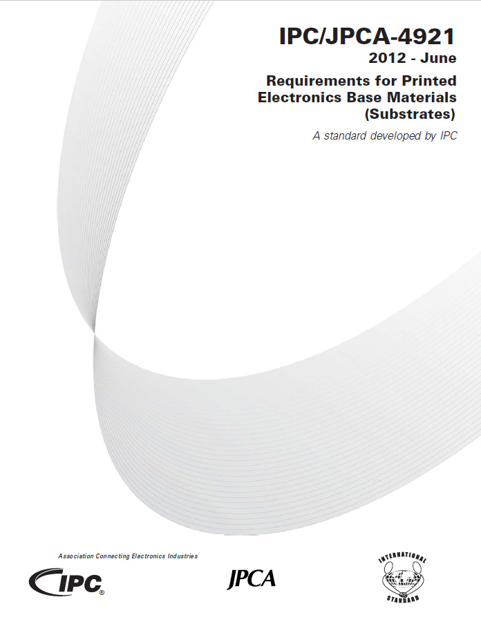 This document provides comprehensive data to help users more easily determine both material capability and compatibility for flexible and rigid base dielectric materials for manufacture of printed electronics. It includes base material specification sheets that have been updated with the newest properties for the specification material types. It establishes the most current classification system, qualification and quality conformance requirements, including those raw material properties of particular interest to the printed electronics designer, fabricator, or user. This standard is a joint standard published by IPC and JPCA, Japan Electronics Packaging and Circuits Association. 26 pages. Released June 2012.