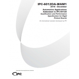 The IPC-6012DA-WAM1 Addendum, when required by procurement documentation/drawings, supplements or replaces specifically identified requirements of IPC-6012D, Revision D, for rigid printed boards that must survive the vibration and thermal cycling environments of electronic interconnects within the automotive industry. The amendment changes to this document includes updated requirements for lifted lands, pattern feature accuracy, dielectric removal (e.g. wicking), solder mask thickness, cleanliness and suitability and reliability testing parameters.