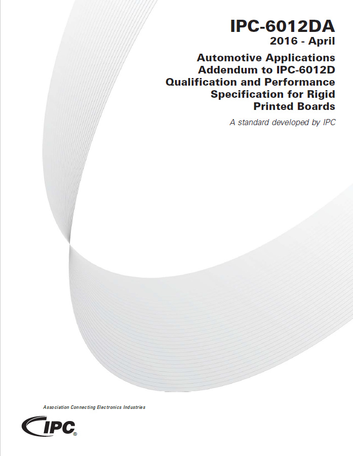 This Addendum, when required by procurement documentation/drawings, supplements or replaces specifically identified requirements of IPC-6012D, Revision D, for rigid printed boards that must survive the vibration and thermal cycling environments of electronic interconnects within the automotive industry.