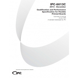Covers qualification and performance requirements for flexible printed boards designed to IPC-2221 and IPC-2223. The flexible printed board may be single-sided, double-sided, multilayer or rigid-flex multilayer. All of these constructions may include stiffeners, PTHs, microvias, and blind/buried vias. Revision C incorporates new and updated requirements for final finishes, surface and hole plating, stiffeners, copper filled microvias, cap plating of holes, thermal stress testing, smear removal, and conductor thickness. Supersedes IPC-6013B. For use with IPC-6011. 50 pages. Released November 2013.