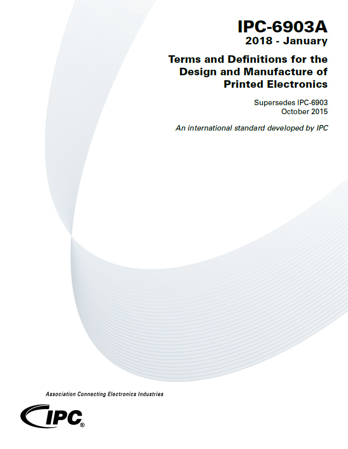 The IPC-6903A standard provides 62 additional terms and definitions for the design and manufacture of printed electronics. The IPC-6903A standard creates a common language and understanding for the worldwide printed electronics community.