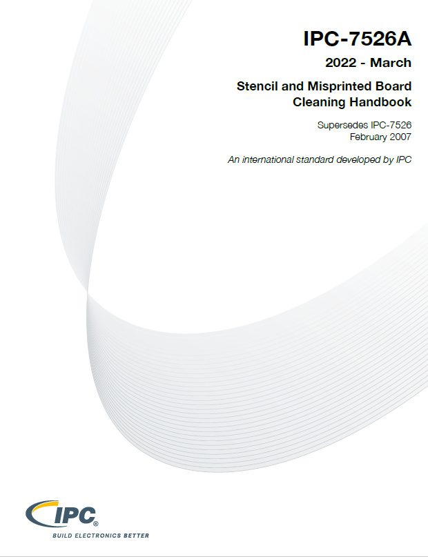 IPC-7526A handbook addresses understencil cleanliness during stencil printing, removal of solder paste from stencils following the cleaning process and misprint PCB board cleaning considerations.