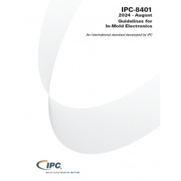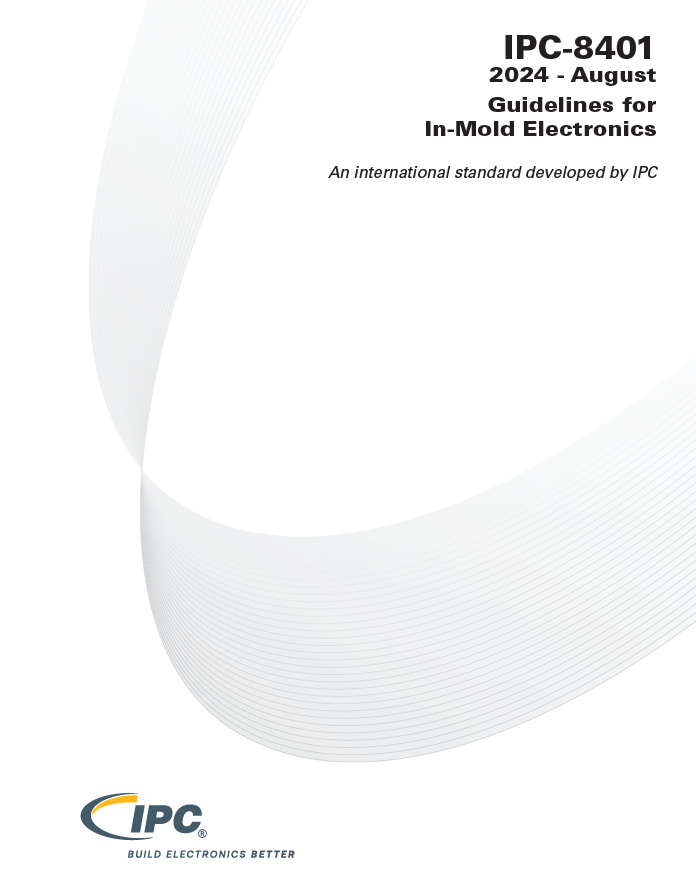 IPC-8401 standard provides guidelines for In-Mold Electronics (IME) manufacturing processes, part structures, candidate materials, and production test methods. In-Mold Electronics integrates printed electronics and electrical components into injection molded plastics, creating a three-dimensional smart molded structure. IME technology uses mass production processes, materials, and components. IME parts are structural electronics characterized by their lightweight, thinness, robustness, and seamless integration.