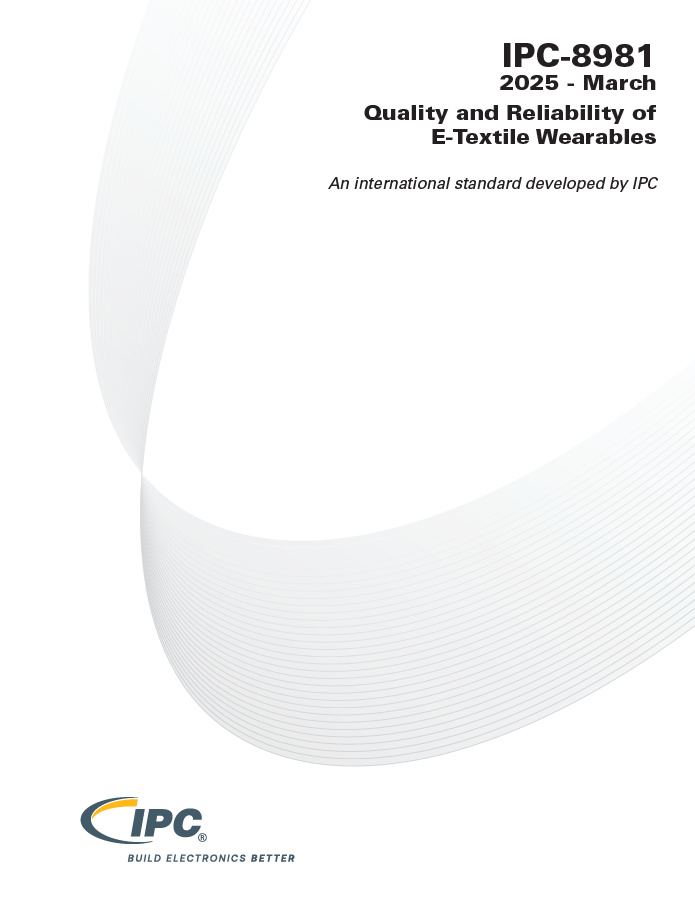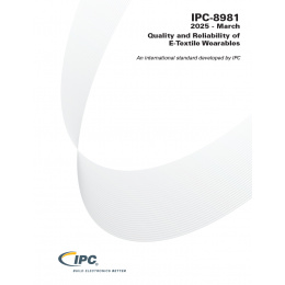 This standard defines classification levels and testing thresholds to assess the reliability of e-textile wearables in their intended end-use environments. It establishes baseline criteria for evaluating durability under mechanical stressors—such as abrasion, flexing, and UV exposure—and environmental conditions including perspiration, washing, water/saltwater, alkalis, and acids. Supported by 14 IPC Test Methods developed specifically for e-textile products, the standard also provides guidance for identifying affected and critical areas for reliability testing.