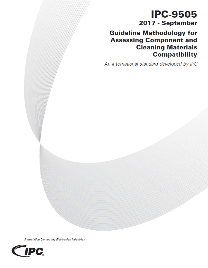 The IPC-9505 standard provides details of test methodologies for cleaning chemistry compatibility with electronic assembly materials that replace those in MIL-STD-202 Method 215 for testing electronic and electrical components such as capacitors, resistors, transformers and inductors. The test methods can also be used, when applicable, to parts not covererd by military specifications or drawings