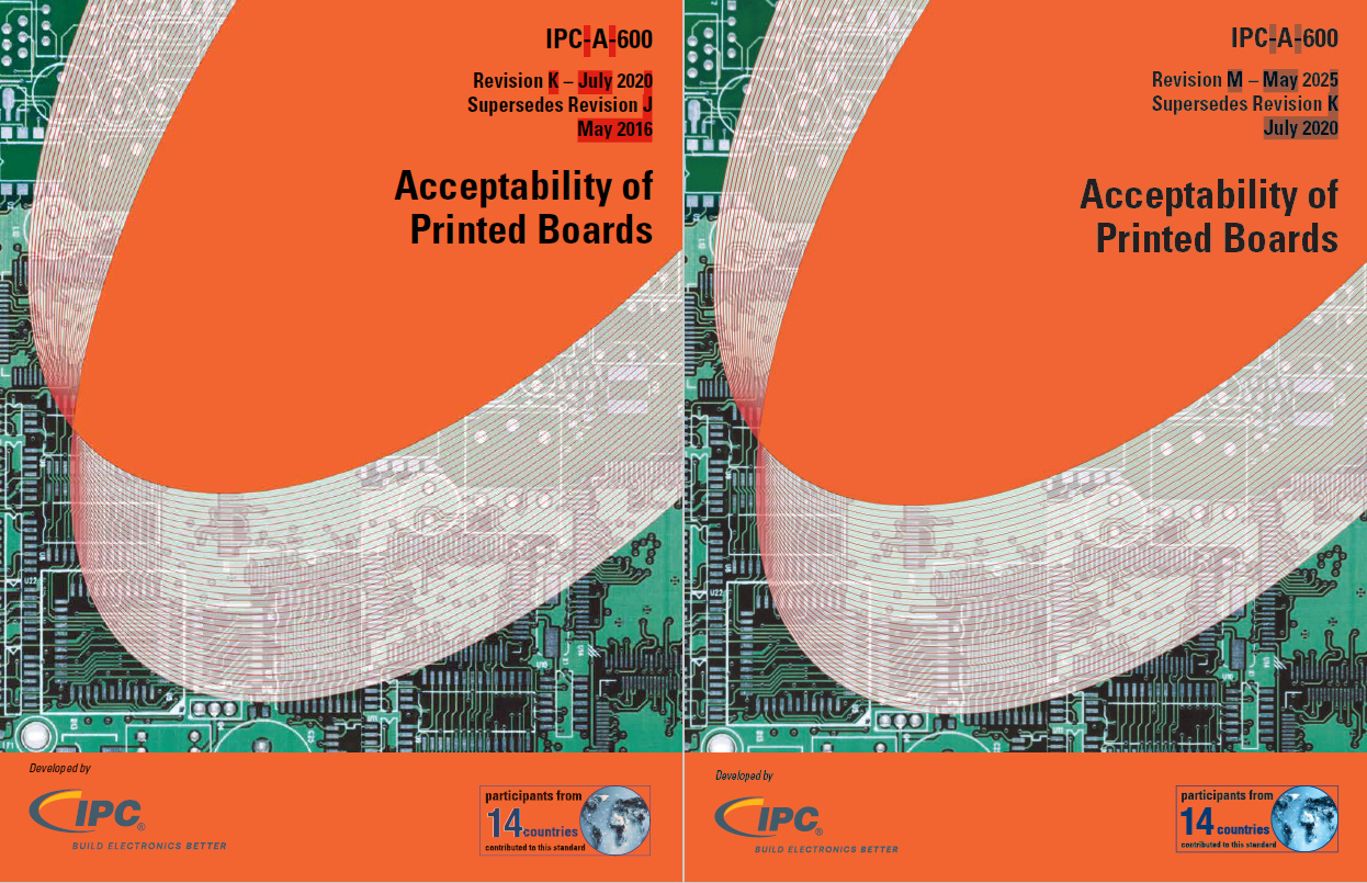IPC-A-600M-RL Redline document shows the changes from IPC-A-600K to IPC-A-600M in a side-by-side comparison of the two documents. The IPC-A-600M Redline is available in electronic format only. As a comparison document it does not replace the standard.