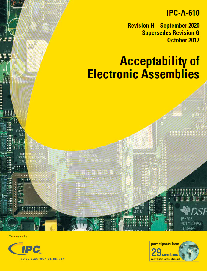 IPC-A-610H is the most widely used electronics assembly acceptance standard in the electronics industry. IPC-A-610H standard includes a general update to the document, introduces several new surface mount component types and removes target conditions. Participants from 29 countries provided their input and expertise to bring this document to the electronics industry.