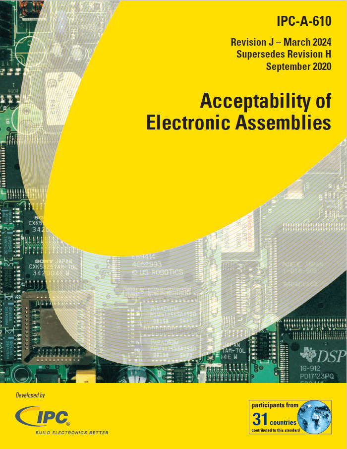 IPC-A-610J is the most widely used electronics assembly acceptance standard in the electronics industry. Participants from 31 countries provided their input and expertise to bring this document to the electronics industry. IPC-A-610J is a must-have standard for inspectors, operators and others with an interest in the acceptance criteria for electronic assemblies. IPC-A-610 is developed in synergy with J-STD-001 and IPC/WHMA-A-620.