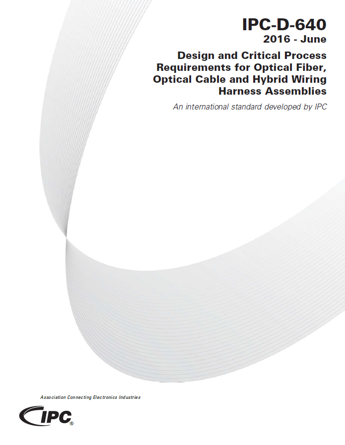 This full-color document provides design and critical process requirements and technical insight for cable and wire harness assemblies incorporating optical fiber, optical cable and hybrid wiring technology. This standard also includes an Excel spreadsheet Verification and Compliance checklist.