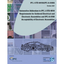 IPC J-STD-001HA/IPC-A-610HA is the automotive addendum to J-STD-001H and IPC-A-610H. It provides criteria to ensure the reliability of soldered automotive electrical and electronic assemblies in the field under harsh environments and considers automated high-volume production.