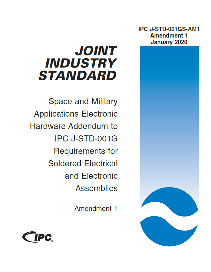 The IPC J-STD-001GS AM 1 amendment to the IPC J-STD-001GS space addendum supplements or replaces specifically identified requirements of IPC J-STD-001G for the cleaning requirements for soldered electrical and electronic assemblies that must survive the vibration and thermal cyclic environments of getting to and operating in space and military applications.