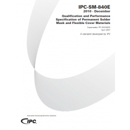 Establishes the requirements for the evaluation of liquid and dry film solder mask material and for the determination of the acceptability of use on a standard printed board system. IPC-SM-840 provides two classes of requirements, T and H, to reflect functional performance requirements and testing severity based on industry/end use requirements. Coverage is given to adhesion, material qualification, resistances to solvents, and electrical requirements. Revision E incorporates requirements for flexible cover materials used as a flexible dielectric protective layer over etched conductors and other conductive features. 30 pages. Released December 2010.