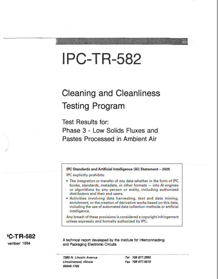 | Standard Number: | IPC-TR-582 - Standard Only |
