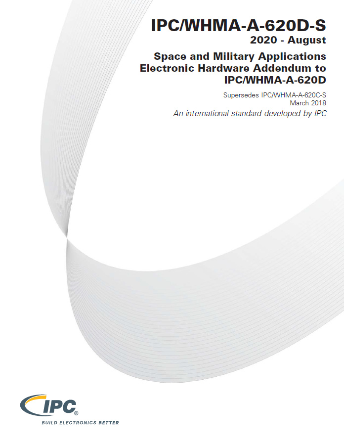 IPC/WHMA-A-620D-S space addendum provides additional requirements to IPC/WHMA-A-620D standard to ensure the reliability of cable and wire harness assemblies that must survive the vibration and thermal excursions encountered getting to and operating in the military and space environments.
