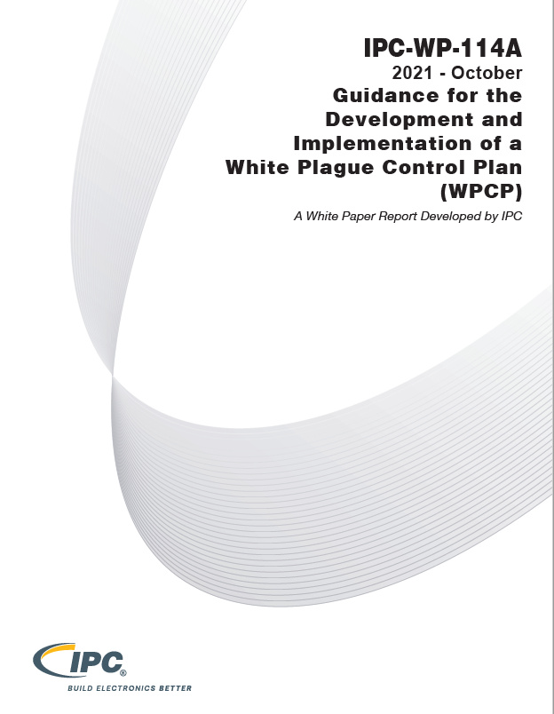 The IPC-WP-114A white paper provides guidance to reduce and control exposure to environmental conditions and contamination that promote the development of White Plague. A template for developing a White Plague Control Plan (WPCP) is included.